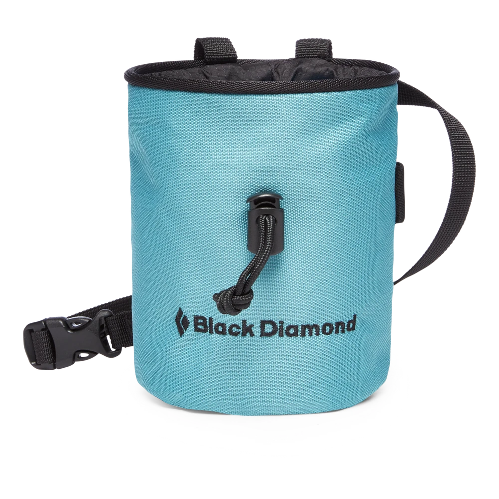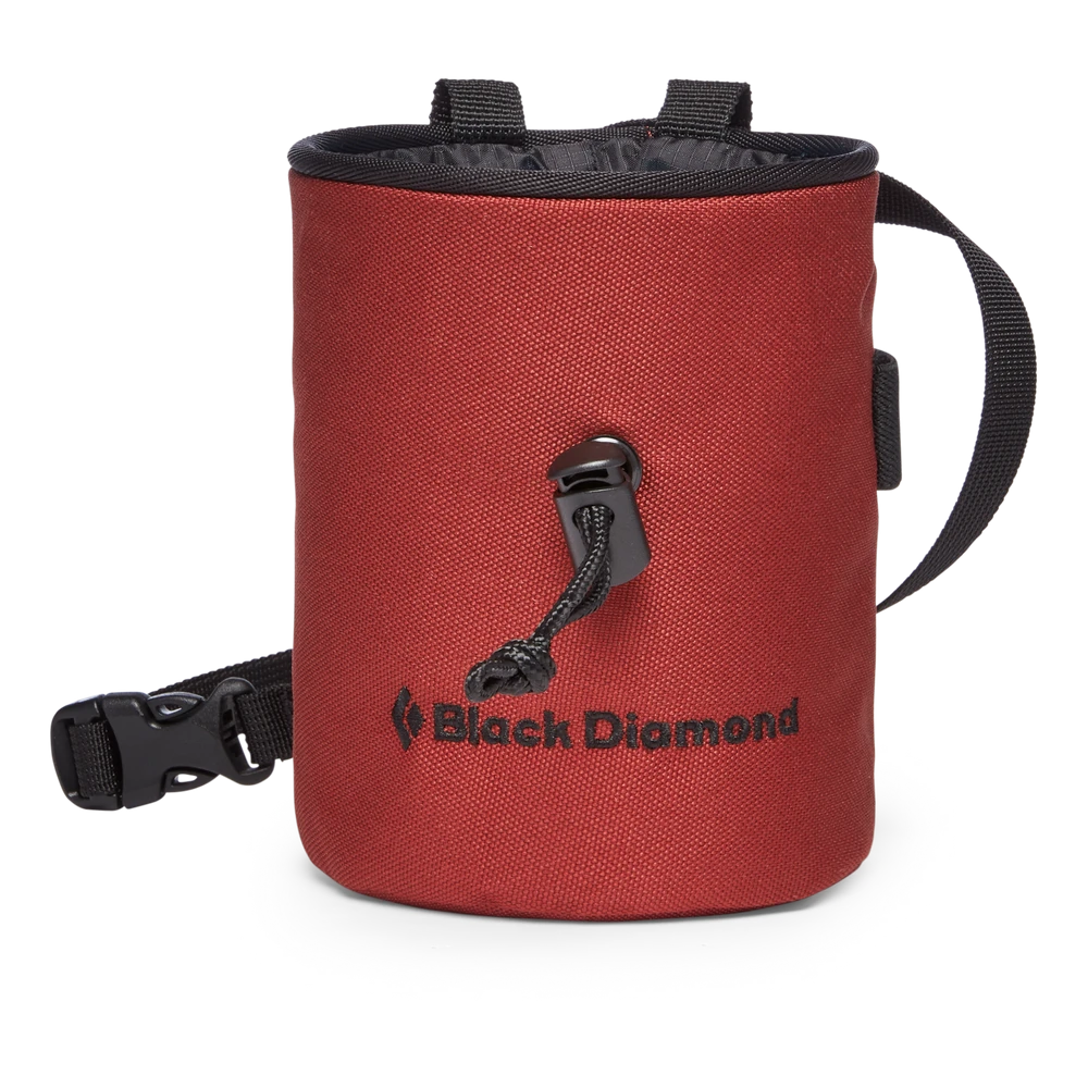 Der traditionelle, einfach konstruierte Chalkbag mit Kordelzug und Gurtband mit Verschlussschnalle.