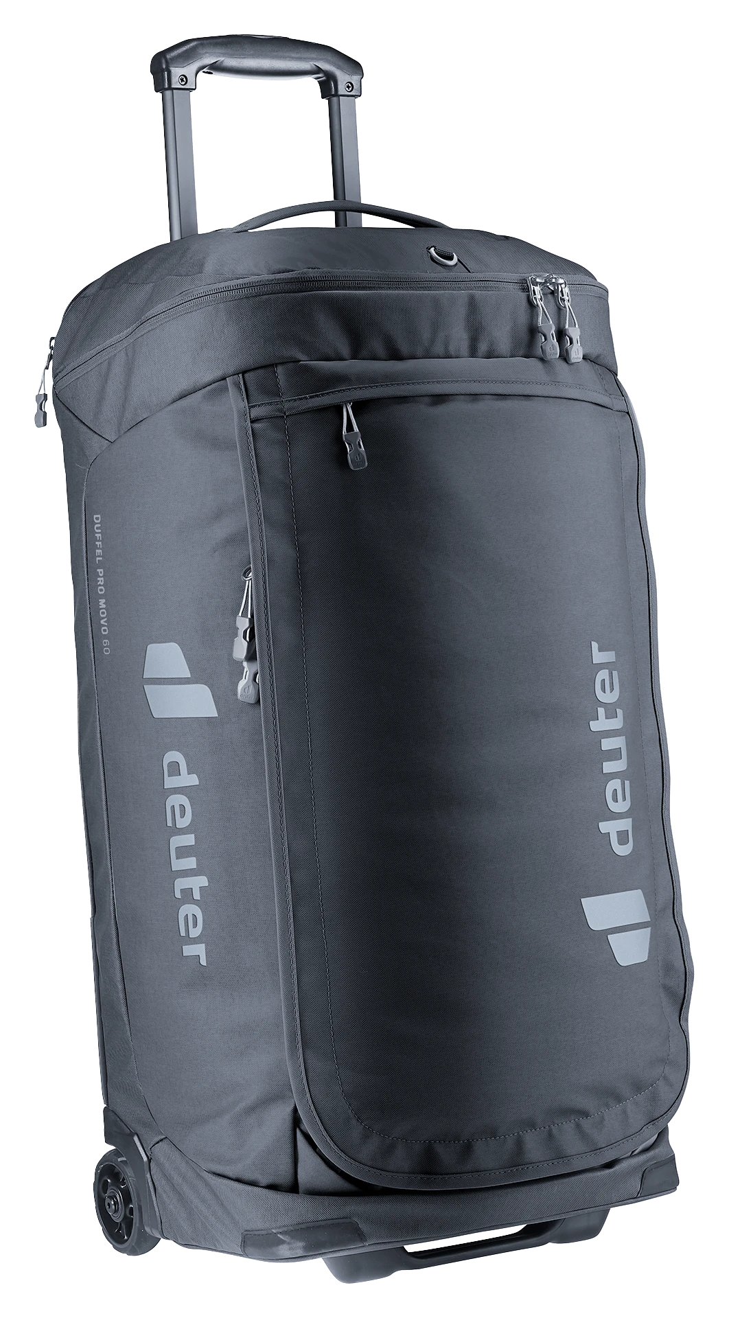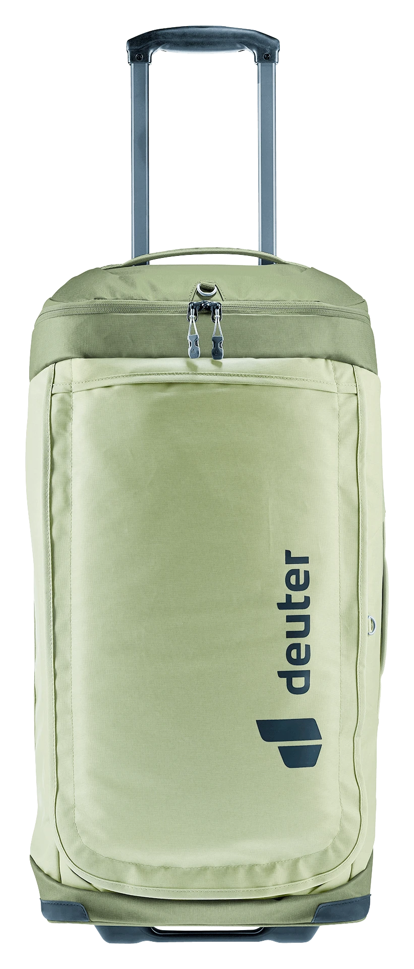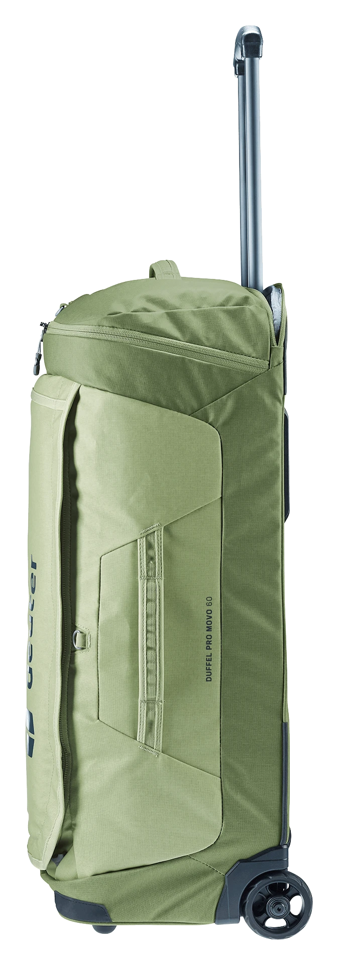 durch das neue Trolleysystem, mit zwei leisen, robusten und auswechselbaren Rollen sowie einem herausziehbaren Griff. Mit den verstaubaren Schulterträgern lässt sich der Trolley auch angenehm auf dem Rücken tragen.