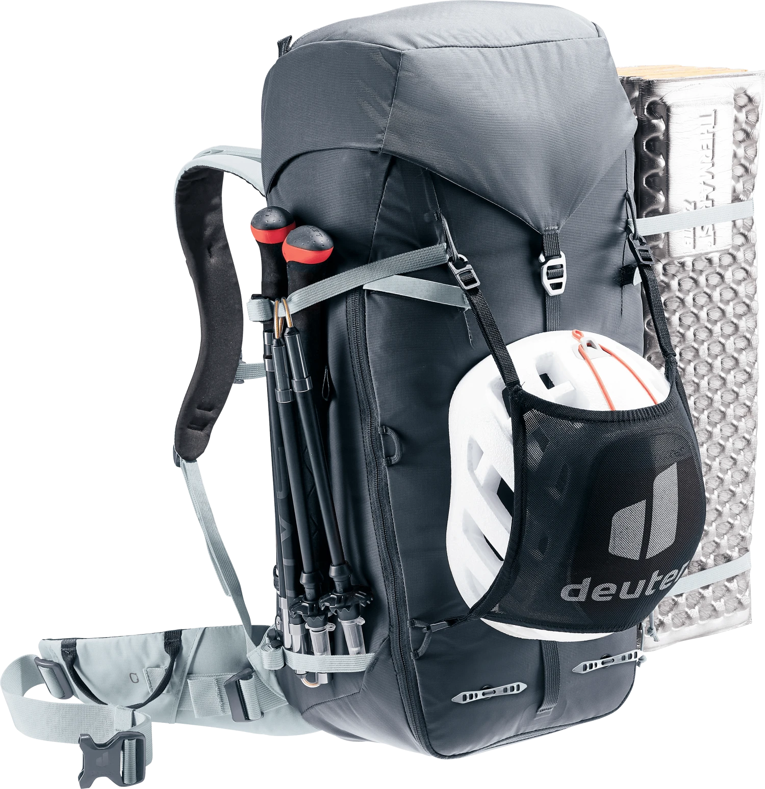 Der klimaneutrale, PFAS-freie Guide 34+8 bietet den bestmöglichen Kompromiss aus Komfort-Gewichts-Verhältnis und Funktion. Das angenehme Tragesystem mit guter Belüftung, der körpernahe Lastenschwerpunkt, die ergonomisch geformten, abnehmbaren Hüftflossen, die robusten Materialien, die ausgefeilten Befestigungsmöglichkeiten und die verstaubare Seilfixierung ermöglichen volle Kontrolle und hohe Bewegungsfreiheit bei mehrtägigen alpinen Einsätzen des Rucksacks. Die J-förmige Frontöffnung erlaubt zudem einen schnellen Zugriff auf das Hauptfach.