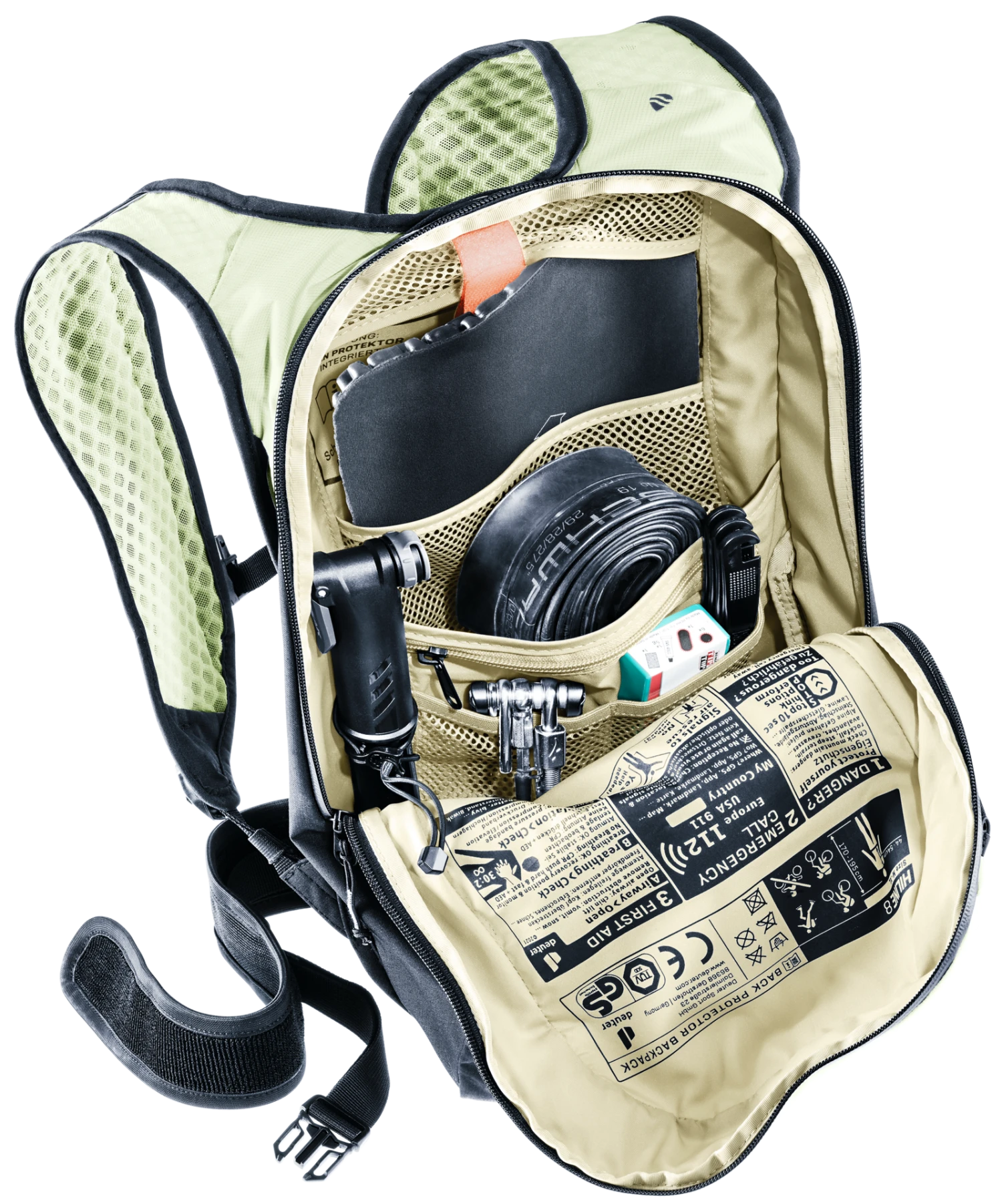 Das EPU-Material der Rückenpads passt sich perfekt an die Körperform an und sorgt zusammen mit den anschmiegsamen, westenartigen Schulterträgern und dem elastisch verstellbaren Brust- und Hüftgurt auch auf sportlichen Trails für einen kompakten Sitz des Packsacks am Rücken. Dabei bietet der integrierte Protektor aus viskoelastischem Schaum maximalen und zuverlässigen Schutz der Wirbelsäule und ist dadurch bis hin zu Enduro-Rennen geeignet.