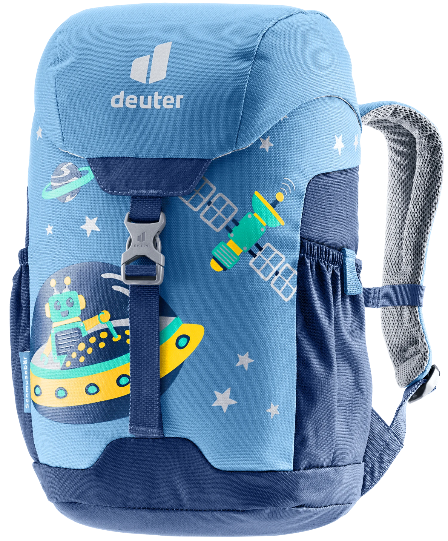 Der Schmusebär ist ein Klassiker unter den Kinder-Rucksäcken. Mit nur einer Schnalle und dem kinderfreundlichen Kordelzug am Hauptfach ist er leicht zu bedienen. Außerdem schützt er die Kleinen, mit dem zusätzlich reflektierenden Print, auf ihrem Weg in den Kindergarten. Besondere Schätze können Mädels und Jungs in der Deckeltasche oder in den elastischen Seitenfächern verstecken. Den Schmusebär gibt es in drei farbenfrohen Varianten: In Blau, Grün und Magenta mit bunten Motiven. Dank des höhenverstellbaren Brustgurts bleiben die Träger auch bei wilden Abenteuern fest auf den Schultern. Limitierte Edition mit Teddybär.