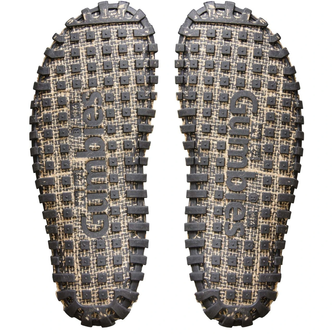 Nicht nur das Design dieser GUMBIES ist eine Hommage an die Schönheit der Natur – auch bei der Herstellung hat das Unternehmen gemäß derer Leitlinien auf den Aspekt der Nachhaltigkeit geachtet. Die hochwertigen Zehentrenner sind daher nicht nur vegan, sondern auch vollkommen frei von Plastik. Dazu kommt: Für die rutschfeste Sohle wird Kautschuk verwendet. Oder anders: Für Gumbies werden ausrangierten Autoreifen ein neues Leben eingehaucht. Zusätzlich kommen die nachwachsenden Rohstoffe Jute und Baumwolle beim Fußbett sowie Zehensteg zum Einsatz.