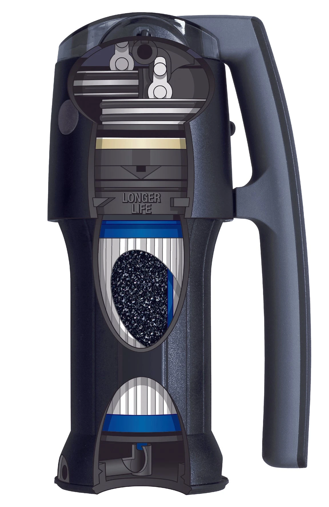 - Individuel zuschaltbarer Keramik-Vorfilter > Keramik lässt sich gut reinigen und schützt den nicht reinigbaren Glasfaserfilter vor Verschmutzung