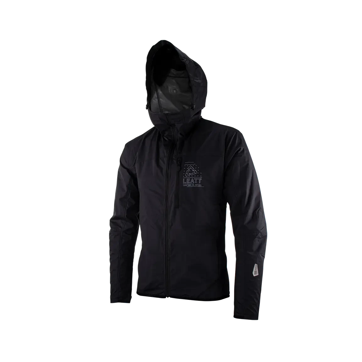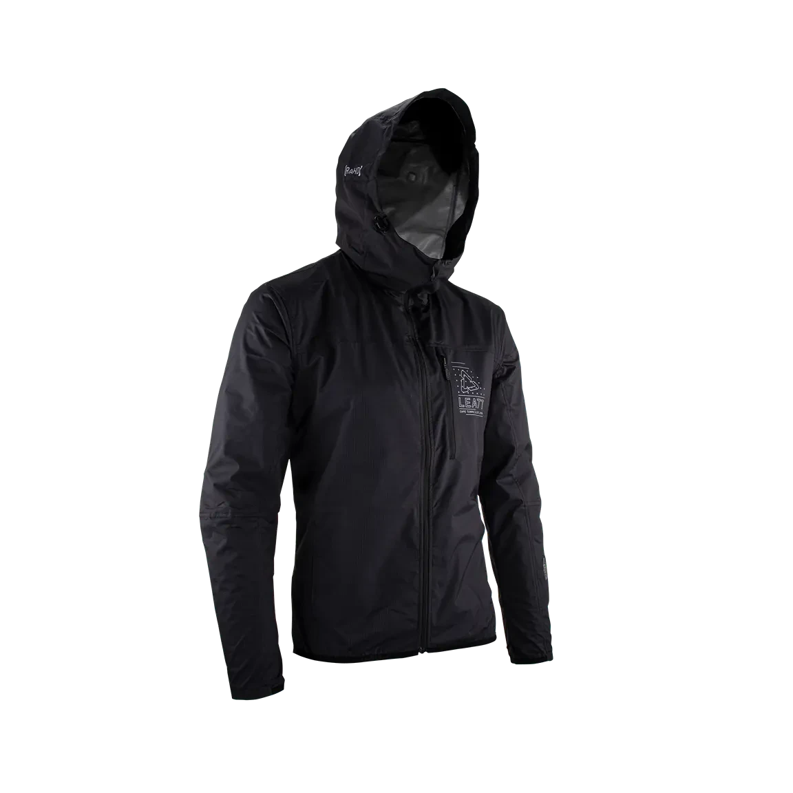 Die Jacke hat zwei Handwärmertaschen an der Hüfte. Die Ride Adaptive Hood (RAhD) mit ihrem hohen Kragen kann in vier verschiedenen Konfigurationen getragen werden und bietet so den perfekten Schutz für alle Wetterlagen. Mit dem einzigartigen Leatt ClimbVent lässt sich die Jacke für maximale Belüftung beim Klettern komplett öffnen.