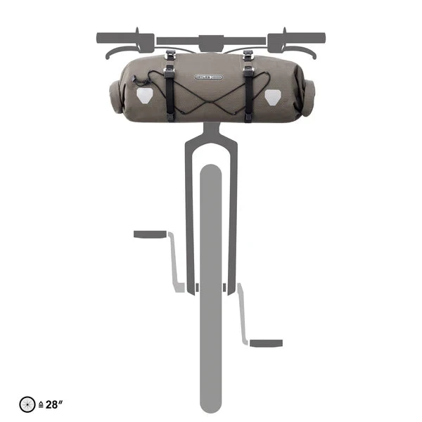 Die Innovation des Handlebar-Pack Flex liegt in der Kombination mit dem Ortlieb Bar-Lock Halterungssystem, das eine besonders einfache, aber sehr stabile Befestigung ermöglicht. Durch die robuste Konstruktion, bestehend aus einer internen Kunststoffversteifung und einer zusätzlichen Fixierung am Steuerrohr, bleibt die Tasche auch auf unwegsamem Gelände zuverlässig in Position.