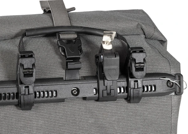 Es lässt sich mühelos an deinem Quick-Lock System platzieren und werkzeuglos montieren. Zusätzlich können die Diebstahlsicherungen (E124/E125) für QL2.1-Taschen als Optionen verwendet werden, um den Rollverschluss oder weitere Gegenstände wie Helme zu sichern. Für noch mehr Komfort ist das Schloss auch als gleichschließende Variante mit zwei identischen Schlüsseln erhältlich.