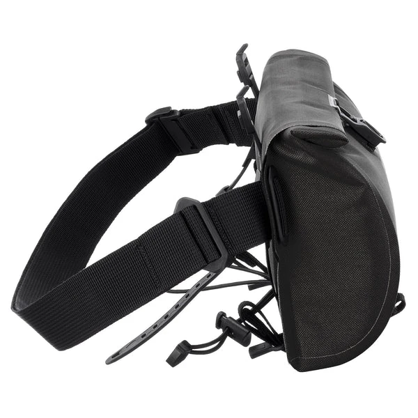 Dank breitem, bequemem Tragegurt angenehm zu tragen. Damit Gurt nicht im Weg ist, wenn du die Tasche am Lenker befestigst, einfach abnehmbar oder am Taschenkörper verstaubar. Zwei mitgelieferte O-Straps und Schaumstoff-Spacer sorgen für festen, stabilen Sitz am Lenker. Zusätzliches Gummiband verstärkt Halterung, verhindert Wackeln und dient flexibel als Sicherung für weiteres Equipment, das du außen anbringen möchtest.