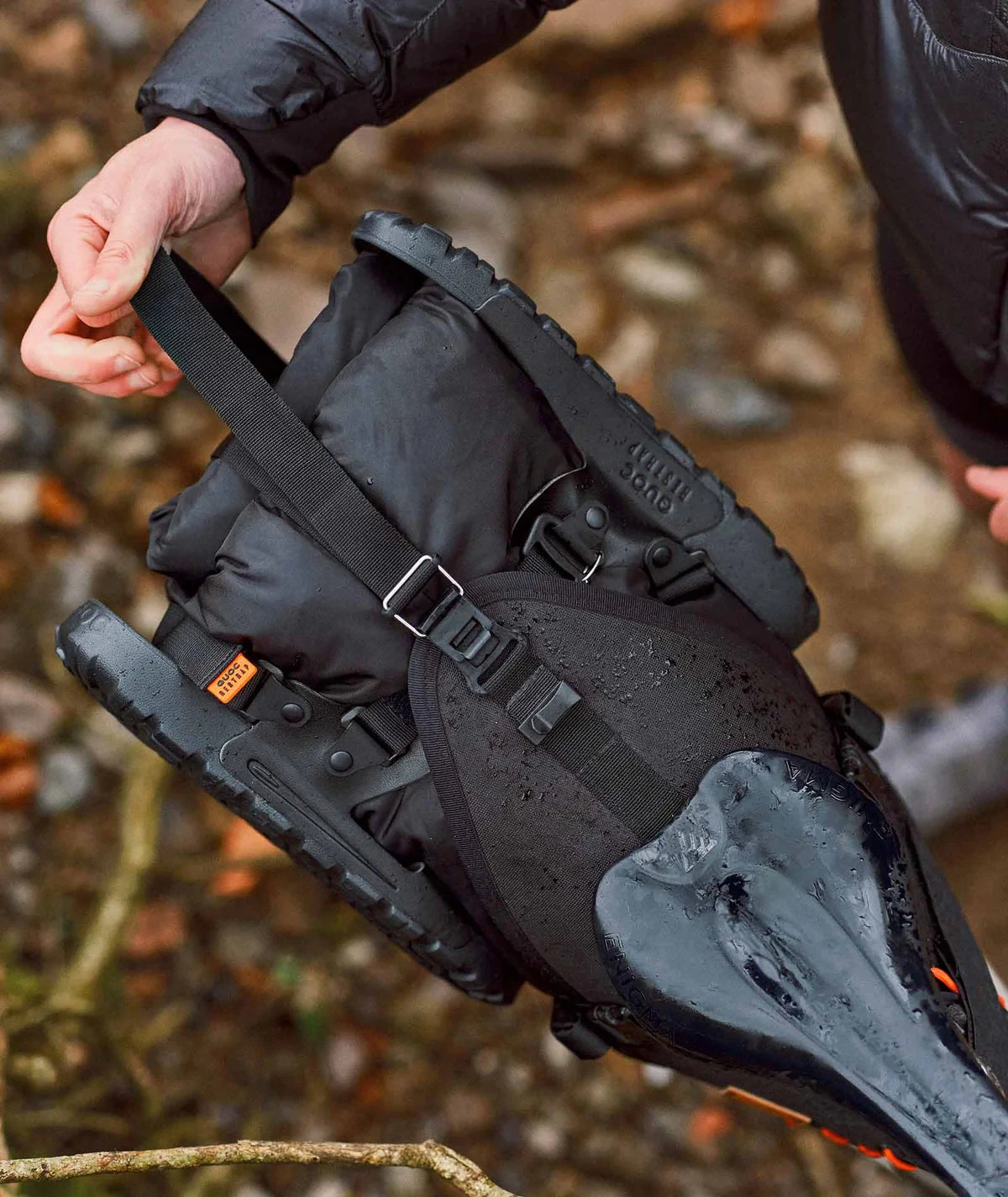 Die QUOC X Restrap Sandale wurde als ultimativer Slipper für die Zeit nach dem Fahren entwickelt und kombiniert lässigen Komfort mit minimalistischer Eleganz. Die Sandale verfügt über ein anatomisch geformtes Fußbett mit hervorragender Dämpfung und Fußgewölbeformung. Dank des griffigen, rutschfesten Profils eignet sie sich für den Duschraum des Velodroms ebenso wie für einen buschigen Waldcampingplatz. Die extradicken Riemen kombinieren QUOCs charakteristische Mikrofaser mit Restrap’s innovativer Formgebung und Verklebung, die ein geringes Bruchrisiko bei langen Touren gewährleisten.
