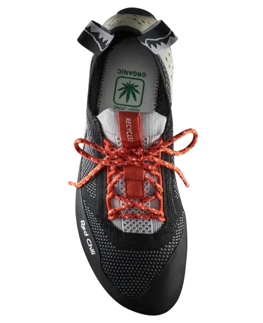 Ein Meilenstein in Sachen Nachhaltigkeit! Wer eine ressourcenschonende Alternative bei Kletterschuhen sucht, wird jetzt beim VENTIC AIR LACE fündig. Alle textilen Materialien des Obermaterials, also Stoff, Schnürsenkel, Schnürsenkel-Schlaufen und selbst die Anzieh-Schlaufen sind aus Post-Consumer-Polyester recycelt und nach dem Global Recycled Standard (GRS) produziert! Unsere Bemühungen, die Umwelt zu schonen, gehen aber nicht auf Kosten der Performance des Schuhs! Gebaut auf den bewährten Leisten des VENTIC AIR verspricht er viel Komfort und kann auch länger getragen werden – für zeitintensive Sessions im Gym oder bei Mehrseillängen-Touren. Das gestrickte Obermaterial gewährleistet eine hohe Atmungsaktivität. Gleichzeitig sorgen Zonen mit unterschiedlich starkem Stretch für eine präzise abgestimmte Passform. Die RX-2 TECHGRIP Sohle bietet hohe Kantenstabilität und unterstützt beim Stehen auf kleinen Leisten.