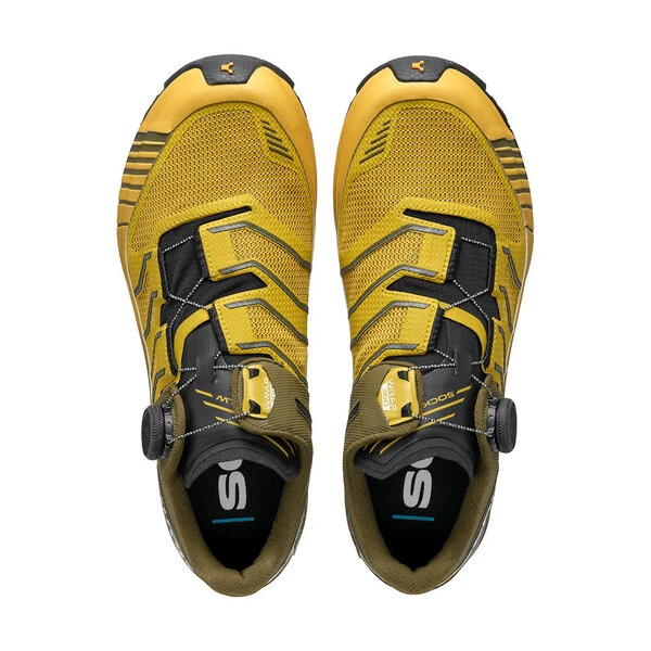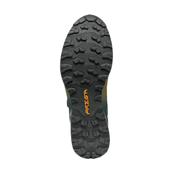 Das Obermaterial aus Mesh und Mikrofaser umhüllt den Fuß dank des Sock-Fit LW-Konstruktionssystems wie eine Socke, vermeidet Druckstellen und gewährleistet maximalen Komfort sowie eine präzise Passform. Der Knöchel wird durch das EXO SCARPA-Konstruktionssystem geschützt. Die Ferse ist gut durch das ikonische TPU-Band stabilisiert, die vollständig um den Schuh wickelt.