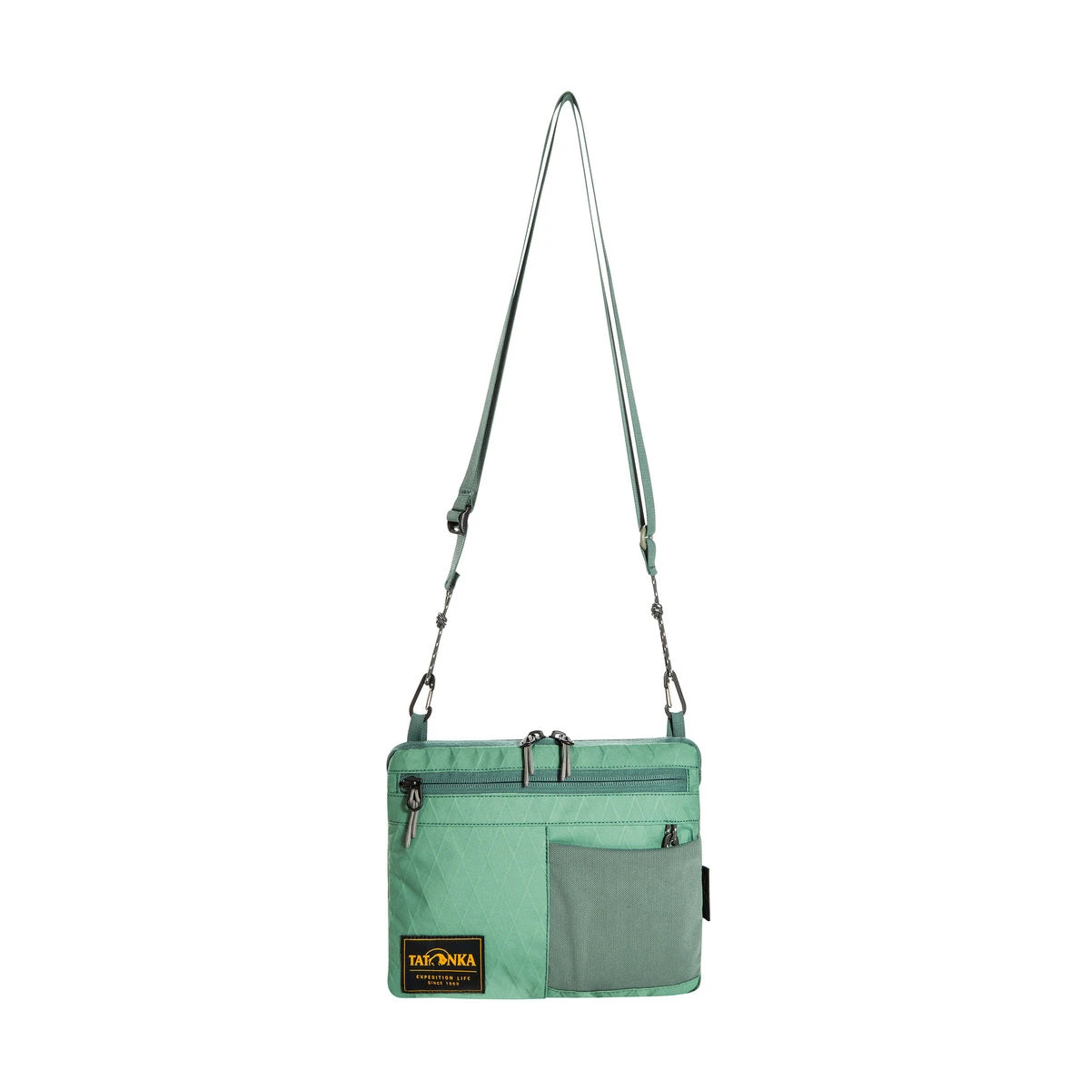 Die Verarbeitung von X Pac®RX 30, einem Laminat mit rautenförmigen Verstärkungen, sorgt für den coolen Look und macht die Tasche sehr strapazierfähig. Das Material ist recycelt, so dass die Tasche das Label GREEN by Tatonka trägt. Die Tasche ist zudem PFC/PFAS-frei ausgerüstet.