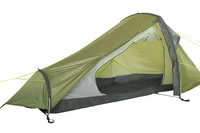 Da Innen- und Außenzelt miteinander gekoppelt sind, lässt sich das 1-Personen-Zelt schnell und einfach aufstellen. Das Innenzelt des Koli kann auch ausgehängt und bei Regenwetter trocken verstaut werden.