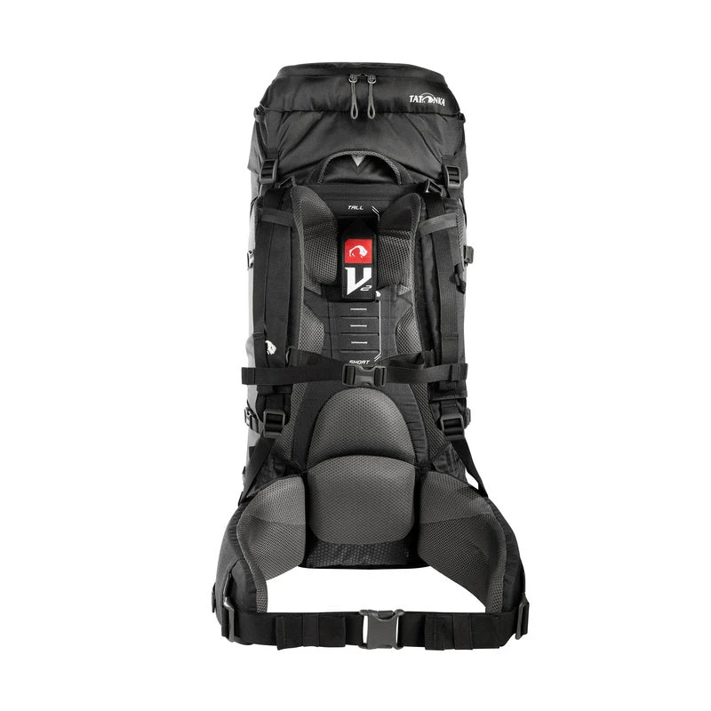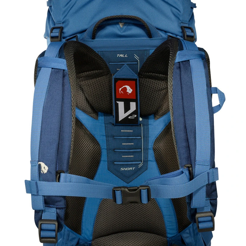 Das seit vielen Jahren immer wieder hervorragend beurteilte V2-Tragesystem des Tatonka Yukon bietet durch den Einsatz gewichtsoptimierter Materialien und den dreidimensional ausgeformten Hüftgurt, der komfortabel an der Hüfte anliegt, einen sehr guten Tragekomfort. Um rückenschonendes Tragen zu gewährleisten, lässt sich das Tragesystem an die eigene Rückenlänge anpassen.