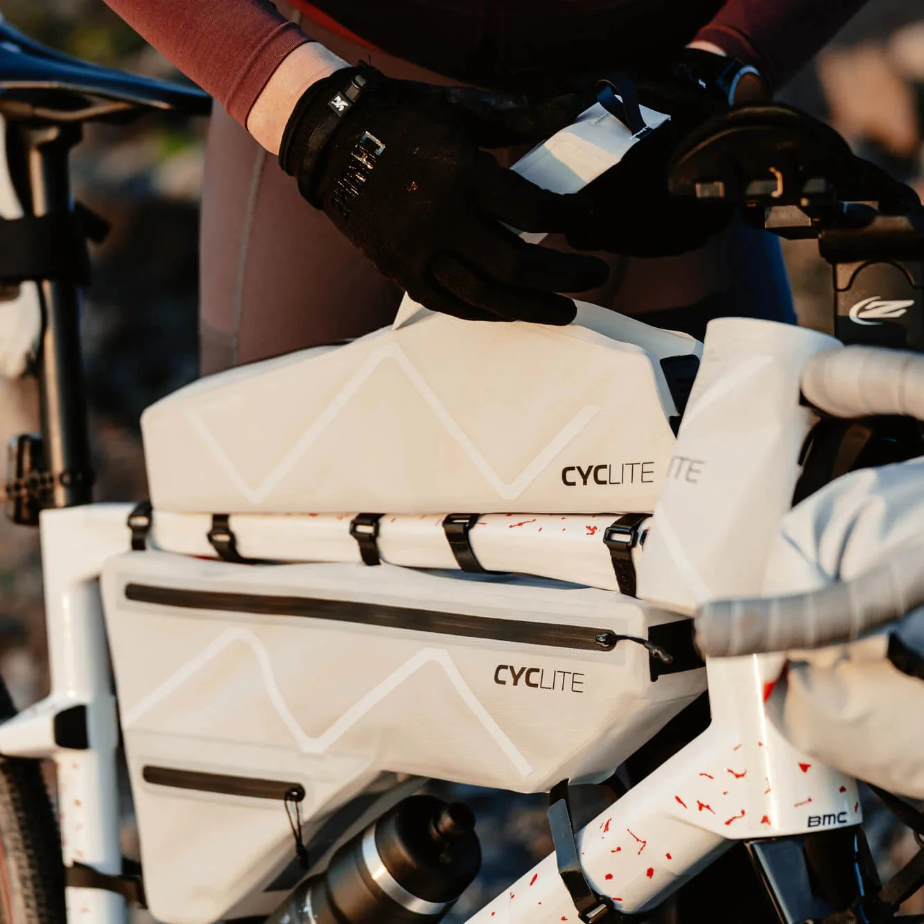 Das CYCLITE Taschen-System wurde für ambitionierte Bikepacker und leistungsorientierte Langstrecken-Radler entwickelt, die insbesondere im Rennmodus von der Gewichtsersparnis und den ausgeklügelten Details profitieren.